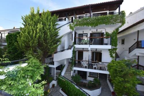 60 km from Thessaloniki, and 50 km from the airport, in the first peninsula of Halkidiki, one can locate Nea (New) Potidea. There, right on the beach and 10 feet away from the sea you’ll find Argo apartments. In an enchanting and peaceful environment, where the pine wood embraces the crystal waters of Toroneos gulf, 18 fully furnished and equipped apartments, right on the beach, await for you to enjoy your vacation. The whole apartment complex is embraced by greenery, built with great taste and loving care, with a unique combination of stone and wood in the interior of the apartments, while the spectacular unobstructed sea view from most of the balconies brings the sea to your fingertips. you’ll be overwhelmed by this exceptional view in conjunction with the magical sound of the sea. Our life-long experience in hosting, our persistence in quality, our professionalism, and our continuous effort to satisfy our guests needs, guarantee you an unforgettable stay. We are expecting you!