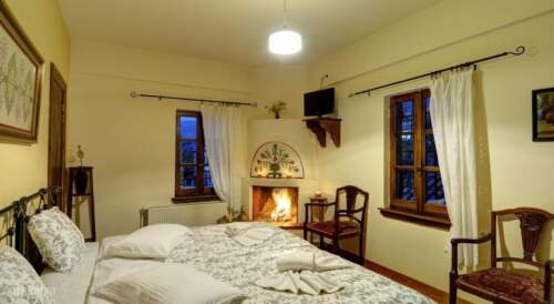Guesthouse Anna’s Home is a traditional 2-storey guesthouse only 150 meters from the main square of Portaria on the mountain of Pilion. All rooms at Guesthouse Anna’s Home have antique furniture, iron beds and dining table. Rooms with fireplace are also featured. traditional breakfast items are provided daily in the common, self-service kitchen of the guesthouse. The Pilio snow centre is located 7.5 miles far from the guesthouse, while the beautiful beaches of Milopotamos and Papa Nero can be found at a distance of 23 miles.