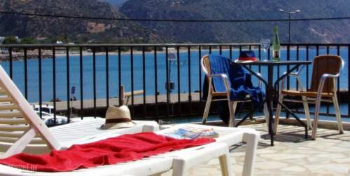 Lovely location right by the harbour on the edge of town Harbour Studios & Apartments, Paleohora, Crete These modern apartments are a cut above the relatively simple accommodation normally available in Paleohora. At first and second floor level and situated on the corner of the town’small harbour, they are literally just a stone’s throw from the picturesque promenade, lined with cafe and tavernas that run along the seafront to the pebbly beach. An attractive feature of the property is the large communal terrace at the front which overlooks the harbour with really magnificent views of the sea and Crete’s White Mountains which are snow capped until June and stunningly beautiful. This terrace is the perfect spot to sunbathe or watch the world go by below and there’s also a covered area where you can relax in the shade with a good book and a long cold drink. Just a few steps from the nearest taverna and with a choice of sandy or pebbly beaches a tad over 5 minutes walk away, there’s definitely no better or more convenient address in town.