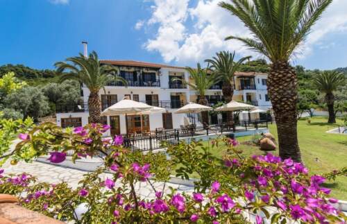 Sporades Islands. In the Sporades Islands, you will admire the unique architecture and you will explore the beauty of unspoiled nature. Undeniably, the stigma of Panormos Beach is that gives an aura of pleasure, brightness and freshness because of the high standards of accommodation and qualitative services offered to our guests. Panormos Beach is located at Panormos, Skopelos Island, 37003, Greece and there are so many terrific beaches around to choose from that your dilemma will be where to go first. There are also sparsely populated settlements or villages to discover that offer amazing seafood, natural aesthetic icons, beaches, monasteries and attractions, thus do not stay in just one location. Looking for a peaceful place to enjoy your holidays Panormos Beach is your destination! Find yourself in a green surrounding with rich pine forests, crystal blue seas and sandy beaches! Taste the famous cheese-pies and have a shot of o?zo in tav?rnas by the sea! The Sporades Islands are waiting for you to discover them!
