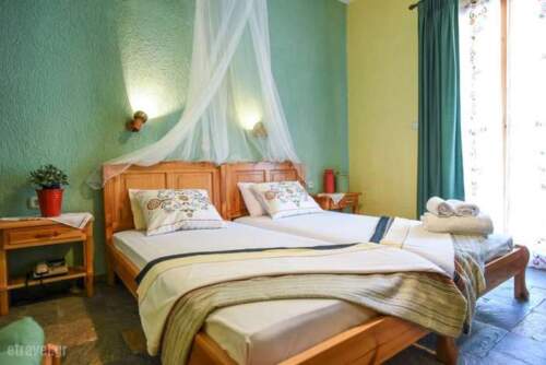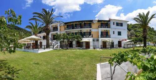 The hotel is distinguished by its peaceful setting, its cleanliness and its scenery. An attractive, colourful garden compliments and embellishes the family atmosphere of the hotel, which also offers a view of the sea and the garden from the large common balcony (veranda). The hotel offers 34 rooms, including single rooms and twin-bed rooms, as well as a few rooms for 3 or 4 people. The entrance is located at the rear and near the reception area guests can admire a miniature folklore museum with rich, old traditional objects. Further facilities include a safe, a bar, a breakfast room, room service and a car park.
