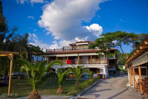 On beach of Paradisos in Neos Marmaras just 110km from Thessaloniki we prepared for you a Traditional hotel which combines the clean blue sea of Toronaios gulf and the forest landscape offered by the Mount Itamos with crystal waters and the wild beauty . Hotel Regos is a family hotel on the sea, which aims to offer services to people for relaxation and fun in the warm and welcoming family environment for unforgettable holidays. In our traditional family Hotel you will find 300 sqm garden with lawn expect your children to play safely and you can enjoy the sun. The snack bar – Beer House is all day at your disposal. At 600sqm parking area you can park your car. In the award winning Blue Flag beach you will find free umbrellas and sunbeds, lifeguard and first aid. Also you can take day trips to archaeological sites or day cruises to Mount Athos , enjoy walks in the woods of Tragoudeli or do mountain bike. We have proposals for you to organize each day special. Only 5 minutes from the hotel you will find the famous and cosmopolitan resort of Neos Marmaras, where you can enjoy a well-known Club or Bar or go shopping.