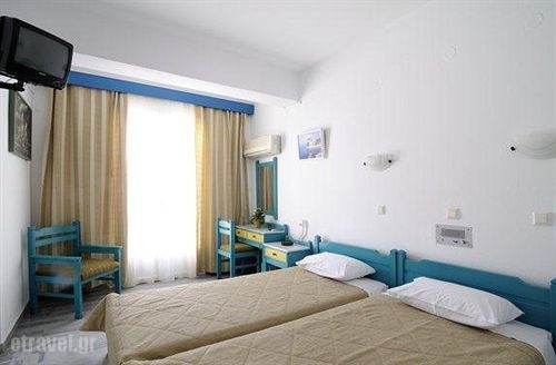 This small, very professionally run beach hotel offers guests friendly service in an informal atmosphere. It comprises a total of 50 rooms and provides guests with a reception area with hotel safe. Further facilities in this air-conditioned hotel include a bar, a TV room and a breakfast room. The hotel is located in the city of Parikia, just 300 m from Aghia Anna Beach and around 800 m from the harbour area. The city of Naousa is just around 11 km away.It is possible to book bed and breakfast stay. The rooms all come with a mini fridge and an en suite bath / shower with hairdryer. Further fittings provided as standard include a direct dial telephone, satellite/ cable TV, a radio, optional background music and either a balcony or a terrace. The air conditioning is individually adjustable.
