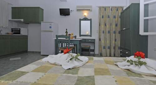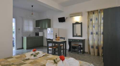 Anixis studios is situated in Alyki, 400 meters from the beach amidst a lush garden with bougainvilleas, geraniums and olive trees. It features self-catered studios with open views to the sea. Paros International airport is just 1.9 miles away. The air-conditioned studios have a TV and a kitchenette with fridge and table. All units are cleaned daily. Guests are free to use the barbeque facilities at the garden. Some units offer fully equipped accommodation with a living room and 3 separate bedrooms. Anixis studios is 7.5 miles from Parikia and the main port and just 50 meters from the bus stop. The beach of Faraggas is 0.6 miles away and features bars and restaurants. Guests the studios Anixis enjoy special rates on car rental. Free airport shuttle and free private parking are available.
