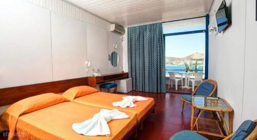 Offering a rooftop breakfast restaurant with panoramic sea views, and air-conditioned rooms with balcony, Hotel Hippocampus enjoys a central location in Naousa, 50 yards from the beach.Guests enjoy beautiful views over the sea from their private balconies. All rooms come a mini fridge, as well as a TV. Daily cleaning service is provided.Buffet breakfast is served on Hippocampus Hotel’s rooftop restaurant, offering a view of the gulf of Naoussa and Kolymbithres bay.In the Hippocampus you will find a TV lounge with bar, and a table tennis area. Free Wi-Fi is offered in all public areas. The hotel’s multilingual staff can assist guests with area information and offer car hire service.Hotel Hippocampus is less than 10 minuteslk from Naousa’s central square, its shops, restaurants and bustling nightlife. The hotel offers free private parking, and the bus stop is right next to the hotel.