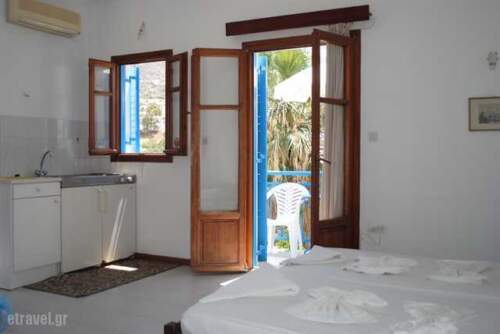 At Jimmy’s you will find low priced accommodation and great value for your money, with a/c, free wi-fi, full bath and kitchenettes in every room, and daily maid service! Jimmy’s Hostel conveniently located in the town of Parikia, only 50 m. from the the sandy Livadia beach!It is suitable for large groups with a common area of over 700 sqm including a BBQ area and rooftop patio with breathtaking sea view! The helpful friendly staff welcome guest with a free map of Paros and information about Paros!
