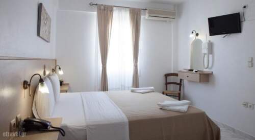 Situated less than a 10-minutes walk from Paros Port, Sunset View features a pool and a lounge snack bar serving meals. It offers accommodation with balcony or patio enjoying Aegean sea and sunset views. Guests are offered free 2-way port transfer. Fitted with anatomic mattresses, all air-conditioned units at the Sunset view include a kitchenette with fridge and cooking facilities. Each has a TV and hairdryer. Breakfast is served by the pool with views of the white washed houses of Parikia. The sun terrace features free sun loungers and umbrellas. A children’s pool is provided for younger guests. Free WiFi access is possible in public areas, while airport shuttle can be provided upon charge. Livadia beach is 900 meters away. The famous Kolymbithres beach is within 6.2 miles. Staff can arrange car rental and free private parking is possible on site.