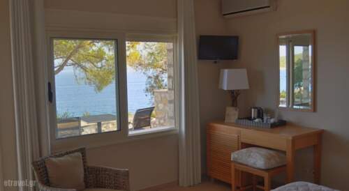 Set on a pine-covered bay, 0.9 miles from the village of Gaios, Paxos beach Hotel boasts a private beach, a seawater swimming pool and a mini golf course.Decorated in natural tones, rooms at Paxos beach have a furnished balcony with views to the Ionian Sea. Each room comes with air conditioning, a satellite LCD TV and a refrigerator. Sun beds and umbrellas are offered both at the swimming pool and on the private beach. The hotel also features a tennis court and a table-tennis table. Free Wi-Fi is offered in public areas. American buffet breakfast is served daily by the pool. Mediterranean dishes made with fresh ingredients are prepared at the hotel’s restaurant. Refreshing drinks and light meals are served at the pool bar. In the village of Gaios, guests can find traditional taverns and seaside cafe. Daily cruises to the charming island of Antipaxos also depart from Gaios port. Free on-site parking is possible.