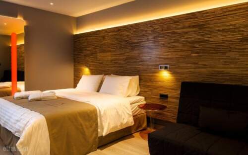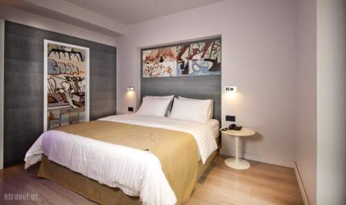 Essence Contemporary Living Hotel is a 4-star property in the city of Ioannina situated next to the airport in a position that gives guest a multidimensional view of the famous Pamvotis Lake and the open field of the airport runways. Decorated with an amazing pop art design, breaks the conventional and traditional standards of luxury hotels in Greece. Each part of it, Sarting from the lobby, to the restaurant, the Congress Center, the outdoor pool, the public areas, up to the bedrooms, rises exclamations of admiration. Constructed by carefully selected materials and high tech equipments is classified in bioclimatic buildings since it uses exclusively eco-friendly sources for its energy needs like geothermal and solar energy.