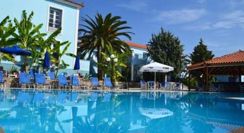 Summer Travel in Petra, Lesvos, Aegean Islands in Blue Sky Hotel
