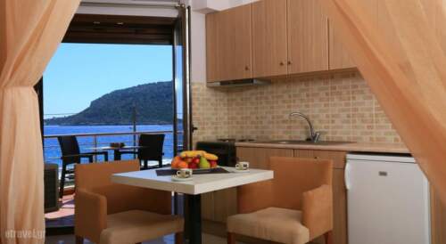 Right on the beach of Marathopolis in Messinia, Faros Luxury Rooms feature a Greek restaurant and a bar. Ôhey offer air-conditioned studios with free Wi-Fi and balcony overlooking the Ionian Sea. Featuring earthy colours, all studios at Faros include a kitchenette with cooking facilities, fridge and dining area. Each has a flat-screen TV with cable channels and a modern bathroom with hairdryer, toiletries and slippers. The restaurant serves lunch and dinner including traditional recipes such as oven-baked, spicy feta and souvlaki. Guests can enjoy their drinks at the bar overlooking the sea and the islet of Proti. Kiparissia is 18.6 miles away. Free private parking is offered at the property.