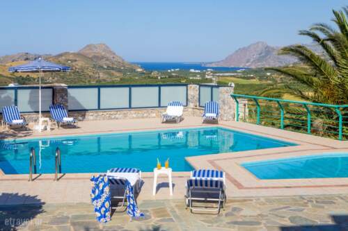Located in the heart of southern Crete, Plakias Villas are ideal for a relaxed vacation while at the same time offering great opportunities for activity. You can choose between Villa Thymari, a 3 bedroom villa accommodating up to 6 adults and Villa Anemos, a 4 bedroom villa accommodating up to 8 adults. Both completely autonomous, each with a private pool and separate children’s section, are set amidst lush gardens offering sea and mountain views from their furnished balconies and patios. Both villas are divided in two levels, have 2 bathrooms, a fully equipped kitchen and a dining area, air condition in every room, fireplace, BBQ, satellite TV and free Wi-Fi. Plakias Villas are situated near Lefkogia village. The seaside resort of Plakias is 5km away and Rethymno is 35km away. At 2 km, Ammoudi is the closest among a great variety of beautiful nearby beaches that include Schinaria, Damnoni, Plakias, Souda and Preveli. There is a mini market, bakery and tavern in the village of Lefkogeia and a variety of shops, bars and restaurants in Plakias. The area offers countless possibilities for activities like swimming, diving, hiking, riding, sightseeing and exploring the diverse nature of southern Crete.
