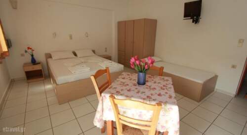 Just 40 meters from the beach, Anna Maria Hotel in centrally located in Platanias vllage, close to cafe-bars and taverns. It features an outdoor pool with sunbeds and free Wi-Fi in all area’s imply furnished, the studios and apartments enjoy a balcony with pool views. A TV, wardrobe and kitchenette with fridge and cooking hobs are standard. Air conditioning and a safe are available upon request with surcharge. A bus stop is conveniently located 100 meters from Anna Maria Hotel. The bustling city of Chania is at a distance of 6.2 miles while Chania International airport is 14.9 miles away. Private parking can be found on site.