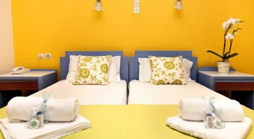 Located in Agia Marina area, Canea Mare Hotel And Apartments offers accommodation with balcony or patio within 50 yards from the beach. Featuring a swimming pool with sun terrace and 2 bars, the property’s public areas enjoy free Wi-Fi access.Canea rooms are bright and tastefully decorated in yellow and green details. Each air-conditioned unit is equipped with a TV and a fridge. Some units also include a kitchenette with dining area.The hotel’s snack bar serves drinks and cocktails until late at night, while there is also poolside snack bar.The centre of Chania is 5.6 miles away from Canea Mare. Chania International Airport is within a 40-minute drive. Free parking is possible on site.