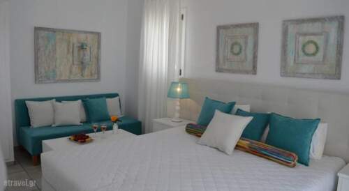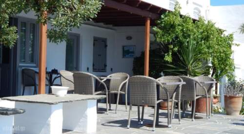 Summer Travel in Platys Gialos, Sifnos, Cyclades Islands in Hotel Flora