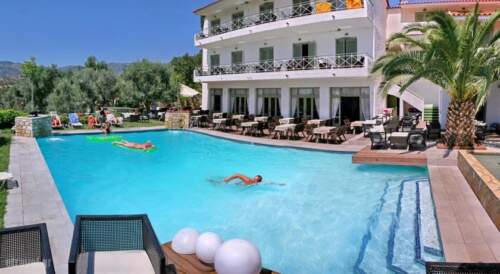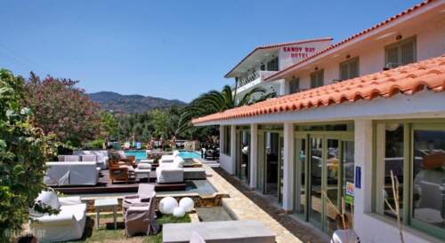 Summer Travel in Plomari, Lesvos, Aegean Islands in Sandy Bay Hotel