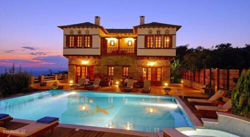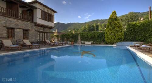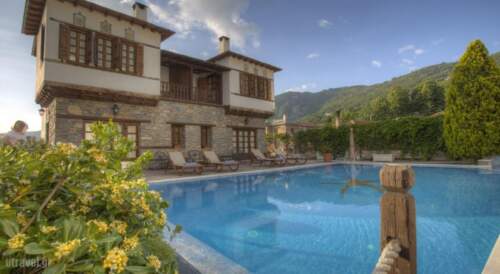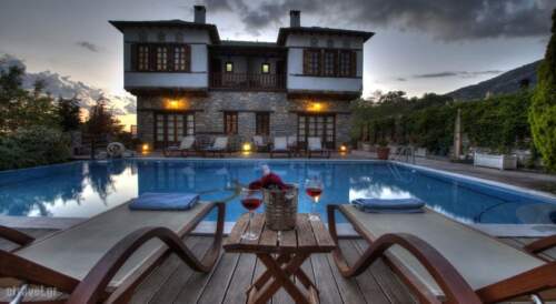 Archontiko Naoumidi, famous for its 19th century architecture in Egyptian Style, is ideally located in the heart of Pelion, only 4.3 miles from the Pilio Ski Resort. The mansion has been renovated with respect to its history and local architecture, while more buildings were added to the complex to house the suites as well as extra rooms. All well-appointed guest rooms combine traditional features such as antique beds and embroidered sheets with modern amenities like satellite TV. The suites also feature a living room with fireplace and shower with hydromassage, or bathroom with spa bath. Homemade jams, pies and juices are offered during breakfast which is served under the chestnut tree in the garden, or in the breakfast room, by the fireplace, in the winter. Archontiko Naoumidi complex also includes an external swimming pool with hydromassage, a children’s pool and wine bar. Traditional settlement Makrinitsa is only 1.6 miles away and the town of Volos is a 25-minutes drive.