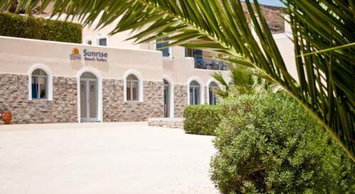 Cyclades Islands. Whats your idea of the perfect beach? Green-blue water and white sand? Beach bars and water sports? Framed by rocks for snorkelling and scuba diving?A secret Aegean cove accessible only on foot or by boat? No matter what your ideal is, youll find plenty of choices in the Cyclades. Known for the iconic blues and whites of their villages and their stunning beaches, the Cycladic islands equally deserve worldwide renown for what their crystalline waters and cove studded shoreline offer to sea lovers. Sunrise beach Suites specializes in a local treat with an aroma of the Aegean. Located at Main Street, Siros, 84100, Greece, Sunrise beach Suites will make you believe that it has come out of the foam of waves and looks like a white painting on a blue font. Sunrise beach Suites is ideal for a relaxed and serene holiday. Because of Sunrise beach Suites location visitors can easily explore impressively fertile valleys, lush green gorges, stunning seascapes and traditional villages perched high on mountain tops, where the inhabitants still wear their traditional dress and live off the fruits of the land! Sunrise beach Suites is the place where Greek tradition and hospitality come to a harmonious marriage.