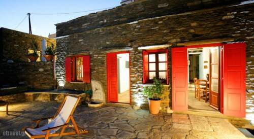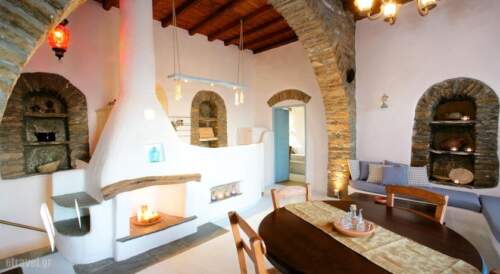 Set in a traditional building dating from 1887, Villa Ghisi is located in Arnados village. Built with stone and wood, it offers self-catering accommodation enjoying Aegean Sea views from their furnished terrace. Free Wi-Fi is available in all areas.Boasting built-in beds and beamed ceilings, each apartment in Ghisi has a decorative fireplace or a wooden stove. Each includes a flat-screen TV with CD/DVD player in the seating area. The well-equipped kitchen is fitted with stove, fridge and coffee machine. A dining table is also provided.A free shuttle service to and from the port is available, and the property can assist with car and bike rentals.Chora, the scenic capital of Tinos, and its port, are 5 miles away. Several beaches are within an 5 miles radius. Free public parking is provided in the premises.