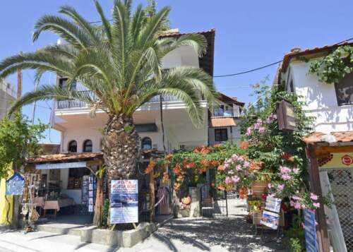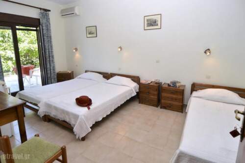 Our family-run guest house is situated in the old fishing village of Potos in Thassosn its two floors there are ten rooms, each of which can accommodate 2-4 people. All the rooms have a refrigerator, a WC, a shower and all the necessary furniture, and there are two large communal kitchens, one on each floor. Towels and bed linen are supplied, and laundry facilities are available.The house was built in 1989 and is maintained in perfect condition by ourselves. It is Built in traditional style and has a pretty inner courtyard, fenced so your children can play in safety. You can also let them play freely on the beach while you enjoy a drink on the waterfront watching the sun set behind Mount Athos.Our house is just 50 metres from the beachn very handy for a swim at any time of day. The bakery is just next door, and there are all kinds of other shops within a few metres, where you will be able to stock up on whatever you need. A number of tavernas and cafes are close by. In fact, the whole village is within easy walking distance.Potos is the most convenient village for visiting the dozens of pretty little beaches and the beautiful landscape of the southern half of the island.