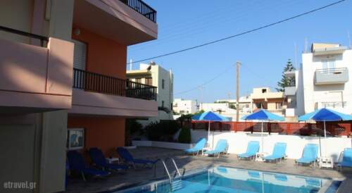 Daisy Hotel and Apartments is 50 yards from a long sandy beach in Rethymno and close to various shops, taverns, cafe-bars and supermarkets. It offers a pool, free Wi-Fi and self-catered accommodation.Equipped with a kitchenette, each studio and apartment comes with cooking hobs, tea/coffee maker and fridge. Air conditioning, a safe, TV and dining area are also featured. Most units open out onto a balcony and include limited or full Cretan Sea views.Guests can unwind at the on-site snack bar while enjoying refreshing drinks and light meals.The centre of Rethymno city is 1.2 miles from Daisy Hotel and Apartments. Free public parking can be found nearby.