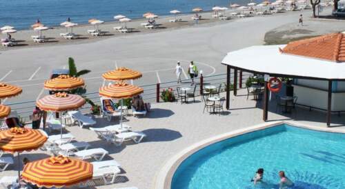 Outdoor pool (seasonal)|Garden|Terrace|Sun terrace|Golf course (within 3 km)|Billiards|Beachfront|children's playground|Bar|Restaurant (buffet)|Snack bar|Car hire|24-hour front desk|Currency exchange|Luggage storage|Shared lounge/TV area|Daily maid service|Fax/photocopying|Gift shop|Newspapers|Safety deposit box|Shops (on site)|Mini-market on site|Non-smoking throughout|Air conditioning