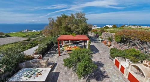 Located in the scenic village of Oia, 3Arches is a former historic building that turned into a traditional villa with Aegean Sea views set amidst lush gardens with olive trees. Free WiFi is available throughout.The villa is built with local volcanic stone and features antique furnshings, original artwork and stone floors. There are 3 spacious bedrooms, each with its own bathroom with built-in shower, and its own private exterior entrance. The fully equipped kitchen comes with terracota tiles and Italian marble countertops.You can have your lunch under the pergola in the courtyard, or dine al freco on the large handemade dining table. A traditional BBQ oven can also be found on site.Within walking distance, you can reach the centre of Oia, where you will find mini markets selling local products, wine shops, ATMs, cafes, taverns and gourmet restaurants. Cape Columbo Beach is at 2.5 miles. Santorini Airport is 10.6 miles away, while Athinios Port is a 30-minute drive away.