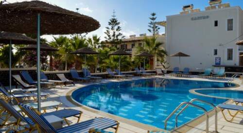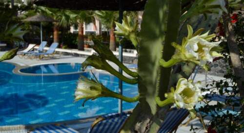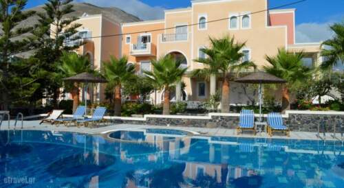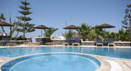 A short walk from the beach and centre of Kamari, Castro Hotel features an outdoor pool and a pool for children. It offers free Wi-Fi in public areas and rooms with views over the Aegean Sea, the garden and the pool.Surrounded by tropical gardens, all well-equipped rooms enjoy private balconies. All units have air conditioning, safe deposit box, ceiling fan, bathroom with shower, fridge and television.A buffet breakfast is served daily in the dining area. In the evenings guests can enjoy the barbeque area or take a stroll to the cosmopolitan beach of Kamari offering a wide selection of traditional restaurants, cafe, bars, shops and even an open-air cinema theatre.The well connected Hotel Castro offers car and motorbike rental service, while is also located only 100 yards from the bus stop.
