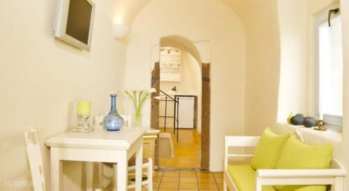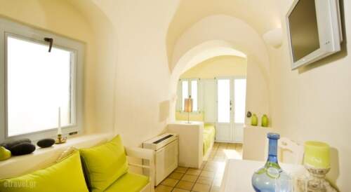Overlooking the volcano, this chic hotel in Santorini offers sea-view rooms with private balconies. It boasts a spacious panoramic terrace with a cafe and bar. Free Wi-Fi laptops are available.The brightly decorated interiors of Enigma Apartments feature arched ceilings and elegant furniture. Each suite and apartment is air conditioned and has satellite TV. All include kitchens and stylish bathrooms.