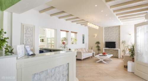 Located in a quiet spot 100 meters from the town’square of Fira, the white washed Nissos Thira features a pool surrounded by a sun terrace. It offers air-conditioned rooms with free Wi-Fi 200 meters from the caldera. A balcony and an LCD satellite TV with cable channels are featured in all rooms at the Nissos Thira. Each has a fridge and a private bathroom with hairdryer. Some rooms overlook the pool, breakfast is served in the sunny dining area. Guests can relax in the free sun loungers on the terrace. A bus stop is 50 meters away. Santorini International airport is at 4.3 miles. Athinios port is within a 10-minutes drive.