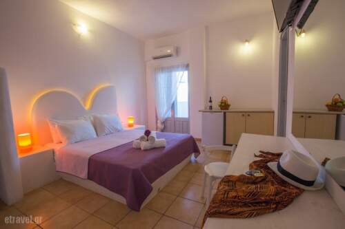 Our newly constructed complex of Odysseas Hotel is going to open it’s wings this summer of 2013 and welcomes you with the perfumes and the colors of the summer. The whitewashed Odysseas Hotel is located 100 meters from the famous for its volcanic sand huge Black beach of Perivolos. A new Swimming Pool, Jacuzzi, Pool Bar is waiting for you. Guests can play free table tennis or borrow a book from our small collection, or a board game. It offers free Wi-Fi in public areas. Breakfast (condinental breakfast) is served daily at the poolside snack bar (8am – 10.30 am), where guests can enjoy drinks and light meals throughout the day and watch a small or big television event in 60 inch TV in the bar. The Reception Staff is always available to give you information about daily trips to the volcano and the island, rent a car and of course to help you find best prices and services for you. It is our pleasure to organize a welcome surprise for your partner, your birthday’s, your anniversary Silver & Gold, your Honeymoon, your engagement and your Wedding as well. Free public parking, public bus station, mini market, restaurants, beach bars are only 5 minutes walk away from the hotel. Odysseas Hotel is close enough in order to enjoy all activities and far enough to be quiet. It is ideal destination for couples and families as well. Just a few minutes away from the sea, Odysseas Hotel features 22 Studios, 5 Suites/Maizonette and 3 Suites Superior Sea View/Maizonette .