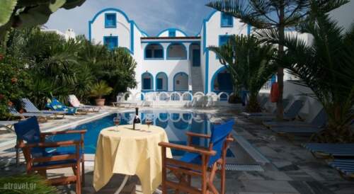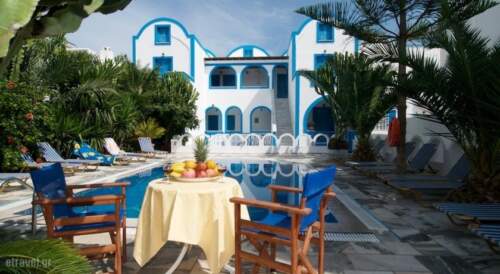 Cyclades Islands. What’s your idea of the perfect beach? Green-blue water and white sand? Beach bars and water sports? Framed by rocks for snorkelling and scuba diving?A secret Aegean cove accessible only on foot or by boat? No matter what your ideal is, you’ll find plenty of choices in the Cyclades. Known for the iconic blues and whites of their villages and their stunning beaches, the Cycladic islands equally deserve worldwide renown for what their crystalline waters and cove studded shoreline offer to sea lovers. Pension George specializes in a local treat with an aroma of the Aegean. Located at Karterados, Santorini, 84700, Greece, Pension George will make you believe that it has come out of the foam of waves and looks like a white painting on a blue font. Pension George is ideal for a relaxed and serene holiday. Because of Pension George location visitors can easily explore impressively fertile valleys, lush green gorges, stunning seascapes and traditional villages perched high on mountain tops, where the inhabitants still wear their traditional dress and live off the fruits of the land! Pension George is the place where Greek tradition and hospitality come to a harmonious marriage.