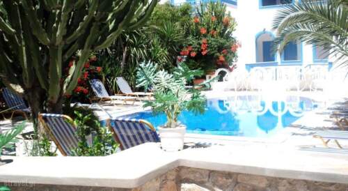 Family-run Pension George is located in Karterados, just 1.2 miles from Fira, or a 15-minutes walk. Surrounded by a garden with exotic plants, cacti and flowers, it hosts a swimming pool. The nearest beach is a 10-minutess ride. Rooms are bright and airy, each with a bathroom, fridge, safe and air conditioning. Most have a balcony and satellite TV. The studios additionally have a kitchenette and can accommodate up to 5 personsbreakfast is available upon request and can be served on the terrace or outdoor courtyard. Coffee shops, restaurants and mini markets are within easy walking distance. Free transfer from the port or airport is offered upon arrival and free parking is available right next to the hotel. The hotel hosts will be happy to assist guests th ticket service, guided island tours and car or bike rentals.