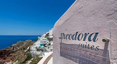 Cyclades Islands. Whats your idea of the perfect beach? Green-blue water and white sand? Beach bars and water sports? Framed by rocks for snorkelling and scuba diving?A secret Aegean cove accessible only on foot or by boat? No matter what your ideal is, youll find plenty of choices in the Cyclades. Known for the iconic blues and whites of their villages and their stunning beaches, the Cycladic islands equally deserve worldwide renown for what their crystalline waters and cove studded shoreline offer to sea lovers. Theodora Suites specializes in a local treat with an aroma of the Aegean. Located at Oia, 84700, Greece, Theodora Suites will make you believe that it has come out of the foam of waves and looks like a white painting on a blue font. Theodora Suites is ideal for a relaxed and serene holiday. Because of Theodora Suites location visitors can easily explore impressively fertile valleys, lush green gorges, stunning seascapes and traditional villages perched high on mountain tops, where the inhabitants still wear their traditional dress and live off the fruits of the land! Theodora Suites is the place where Greek tradition and hospitality come to a harmonious marriage.