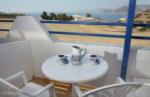 Anesi Hotel is located in the center of Chora and 1 km from island’s port,Mersini. At Anesi Hotel every visitor can enjoy a quiet, comfortable and relaxing vacation thanks to warm and excellent hospitality. The main priority of Anesi Hotel is to offer you a very clean and comfortable place with a beautiful view to the Aegean Sea. Despite the fact that Anesi Hotel is located on the main street of Chora, you will be pleased to find that the rooms balconies offer the peace and relaxation you may be looking for your summer vacations in Small Kyklades. The large meadow and the beautiful view of the Aegean will excite you. You will enjoy wonderful moments of relaxation, from the peaceful morning coffee while reading your book, until the beautiful colors of the sunset.