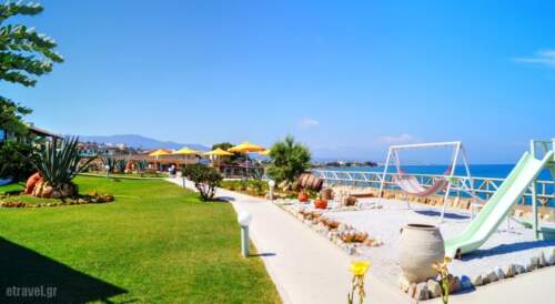 These spacious apartments and studios are situated right on the beach at Sfakaki, offering a large pool with stunning sea views, a children’s playground and entertainment corner.Alkionis Beach is the ideal base for a relaxing holiday by the beach. Set amongst spacious grounds, each of the apartments and studios is well-appointed with kitchen facilities and a comfortable living area.Relax around the lovely outdoor pool or enjoy a refreshing afternoon dip. The sandy beach is just steps away from Alkionis, providing plenty of space for relaxation and family fun.In the evening, relax with a drink on the sun terrace at Alkionis Beach and enjoy the beautiful views of the sea and the beach.