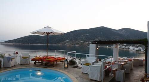 Built above the bay of Platis Gialos, in Sifnos, Hotel Niriedes is just 100 meters from the cosmopolitan beach. It features an outdoor pool with hydromassage area, a sea-viewbreakfast terrace and a small art gallery. Each with a sea view, rooms combine Cycladic elements with contemporary aesthetics. Amenities include free Wi-Fi, a satellite TV with DVD player, as well as a kitchenette and minibar. Korres bathroom amenities, bathrobes and slippers are offered. The poolside is equipped with sun beds, while guests can also relax at the lobby offering a variety of books and table games. active guests will find a gym and young guests will enjoy the indoor playground. Plati Gialos beach is a golden sandy beach, the busiest beach of Sifnos. Many water sports and restaurants are available along the beach. The distance from Apollonia is 15 kilometres.