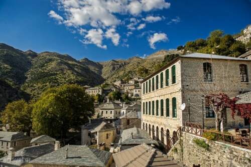Epirus. Along with the offer of sandy beaches cooled by azure waters, are splendidly defiant mountain peaks, healing waters tumbling through verdant valleys, tranquil lakes and lagoons. Visiting To Sirako you will discover the vision of harmony and balance, an ode to timeless beauty that unravels the cares of the soul. On a tour of the prefectures of Epirus, you will find yourself enchanted by traditional villages flanked by fir and pine and babbling brooks. During your stay in To Sirako, take every opportunity to try the local produce, famed for its quality and taste. Multicoloured concrete culture switched into green-blue stone villages, ancient arched bridges, ramshackle castles, quiet mountains topped with snow, and clear River gorges. To Sirako is located at Sirako, Tzoumerka, Epirus, 44001, Greece and this is certainly an ideal location to feel like youve entered a realm where the past is charmingly present. 75 beautiful arched bridges used to connect these small villages to each other, and have the ability to quickly transport visitors to a bygone era. Come and be our guest at To Sirako and youll earn some truly memorable prizes here: scrumptious food, energetic and curious people, wild and rocky nature, stone-paved streets and good Greek vibes. This is what Epirus and To Sirako is about.