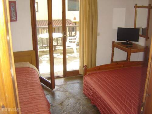 Sarizas Family Apartments are located in a beautiful and quiet spot in the heart of Siviri, just 80 meters from the golden beach. All apartments have a front balcony with sea view and view of our garden on the back side. There is a private road and private parking available and we’re only 40 meters from the village center where you can find all stores, restaurants and beach bars! The Family Apartments are the perfect option for couples and families! The apartments have a big room with kitchenette fully equipped for cooking, a fridge and a single bed. Moving on to a separate bedroom with a double bed and an extra single bed leading to your private balcony with sea view. The apartments are air-conditioned (A/C) and have TV, Wireless Internet (WiFi) and hot water supply.