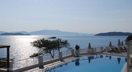 Cape Kanapitsa Hotel & Suites is a boutique hotel located on the edge of Kanapitsa Bay with stunning sea views. Skiathos Chora , the harbour and the airport are approximately 4.3 miles away. The airy and comfortable rooms and luxury apartments acquire large balconies with excellent views over the Aegean sea and the magnificent Bay of Kanapitsa. Guests can enjoy easy reach to 2 of Skiathos finest beaches, just a short walk through the gardens and pine trees. A walk through the hotel’s gardens leads you to the sea-water swimming pool and sun-bathing area. Guests can enjoy a fresh juice or drink and light snacks at the deck of the poolside bar.
