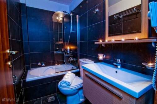 This is a modern family-run complex, with a total of 24 studios and apartments. Facilities at this air-conditioned establishment include a lobby, hotel safe, cloakroom, TV lounge, bar and restaurant. Internet access is available (for a fee) and there is a car park for guests travelling with their own vehicle.The hotel features a large outdoor swimming pool, sunbathing terraces and a poolside snack bar. Sun loungers and parasols are laid out ready for use on the property, and are also available on the nearby sandy beach.The rooms are nicely decorated with bright colours. Each guest room features a private bathroom with a shower, a kitchenette, fridge and double bed. They also provide a TV, individually regulated air conditioning, a balcony or terrace and safe deposit box (extra charge applies).Breakfast is served daily and lunch is offered Aala carte.The apartment hotel is located in a quiet elevated location close to Vasilias and Achladies beaches (less than 300 metres away). There are a selection of minimarkets and restaurants within 300 metres. The town centre of Achladies with shopping, bars and pubs is also around 300 m from the property. The town of Skiathos is some 3 km from the hotel and Lake Koukounaries is some 10 km away.