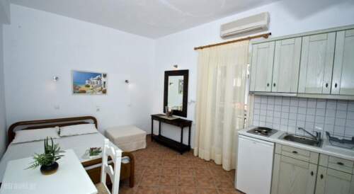 The family-run Maria’s Guesthouse is locatedin Loutraki of Skopelos, just 50 yards from the beach and within 200 yards from restaurants and bars. It offers air-conditioned units with free WiFi access.The rooms, studios and apartments of Maria are equipped with a fridge, a TV and a hairdryer. Each unit includes a bathroom with shower, while some also feature a well-equipped kitchenette. Most units open to a balcony or patio overlooking the Aegean Sea.Loutraki Port lies within 200 yards from the property, while Glossa Village is at a distance of 1.6 miles. Chora and Port can be reached within 13.7 miles. Free public parking can be found nearby.