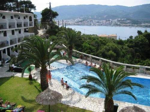 Renovated on 2004 by an Italian architect, the hotel offers a restaurant with large terrace sea view will provide also fine Italian dishes, bar-snack, TV satellite room, recreational room, swimming pool with children pool area equipped with umbrellas and sun beds free of charge, children playground, shop corner, laundry service, room service, conference room and parking. Daily shuttle service free of charge to the town.All the rooms have sea view with private balcony equipped by table and chairs, private bathroom, hairdryer, telephone, mini-bar, air-condition individually controlled and safe-box free of charge. The hotel is located in Punta area 1,5 km far from Skiathos town and 150m from to the sandy beach of Lazareta easy access by a short walk through the green, in a quite green area surrounded by pine and olive trees on outstanding panoramic position overlooking the bay of Skiathos .