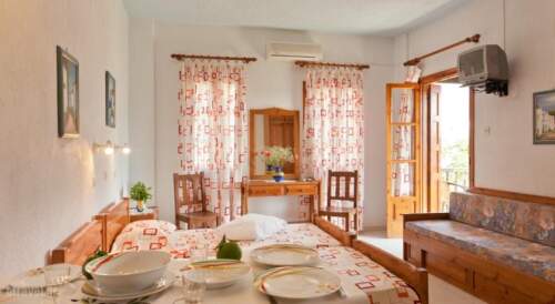 Just a short stroll away from the port of Skopelos, Sofia’s Garden Studios offers self-catering accommodation with air conditioning. It features a furnished stone-paved courtyard surrounded by a flower garden.Sofia’s studios are spacious and come with a kitchenette with refrigerator. They are also fitted with a satellite TV, safety box and a private bathroom with hairdryer. All units open out to furnished balconies, some with views of the Aegean Sea.Traditional taverns, bars and seaside cafes can be found within walking distance of the complex. The scenic beach of Stafylos is less than a 10-minute drive from Sofia’s. Skopelos Folk Museum is 30 yards away.