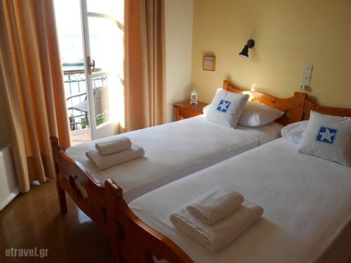 The Alexandris Hotel is a small, friendly hotel, centrally located in the beautiful port of Dapia in Spetses Island. It was built in 1977 and has been in continuous operation under the Alexandris family ever since. It features affordable rooms for couples and friends looking for standard accommodation in hotel rooms with direct access to the main town of Spetses. The hotel offers its guests a relaxing stay in 12 comfortable and sunny rooms. It has two floors which connected only by stairs. All rooms have their own balcony. The six rooms at the front face the magnificent view of the harbor of Dapia and the six rooms at the side face the picturesque and bustling alley that leads to the central square, the Clock Square. Each room has its own bathroom that includes a shower, so body towels and face towels are provided. The hotel has solar panels providing ample hot water 24 hours a day. The air-conditioning is individual and it is controlled by you. There is TV Led, WiFi, fridge and wardrobe, as well as a small bench for luggage. An iron & ironing board can be provided upon request to the management. Its location can be the ideal starting point of exploration and fun on the island.