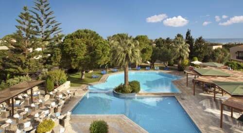 Surrounded by Mediterranean gardens, along a secluded sandy beach in Malia Village, the beach front Cretan Malia Park features a long river pool, a main swimming pool and a children’s pool. The stylish hotel also includes 3 restaurants and offers a variety of activities om morning gym, aerobics and table tennis, to volleyball and beach games. Free WiFi access is provided throughout. Elegantly decorated with tiled floors and well-chosen furnishings, the rooms, bungalows and suites of Cretan Malia Park are equipped with air conditioning, safe and a satellite TV. Each unit features a private marble bathroom with bath tub or shower, hairdryer and free toiletries. Guests can start their day with a Greek breakfast including various cheese types, homemade pies and honey. The hotel’s main restaurant serves local flavors in buffet style, while guests can also taste authentic Greek and International flavors at the poolside restaurant. Italian cuisine accompanied by fine wine can be enjoyed at the Mouries Restaurant for dinner. The hotel’s entertainment team provides Greek cookery, sirtaki dancing lessons and Greek language lessons, as well as evening shows, fun and games. The Younger guests can spend their time at the kid’s club, where competitions and theater performances are organized, the playground or the kid’s pool. The beach front is extensive and runs for about 5 km, between Stalida and Malia. The centre of the lively Malia lies within 1.6 miles from Cretan Malia Park, while Heraklion International airport is at a distance of 21.1 miles.