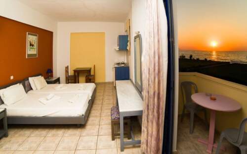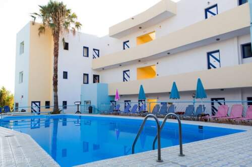 The Blue Dreams apartment’s a family run complex offering comfortable accommodation and the ideal location for a relaxing holiday, set just 50m from the sea and within walking distance from a supermarket and a tavern. The apartments offer a range of facilities to be enjoyed including a swimming pool with children’s sections which is ideal for all the family to relax in during the day or after a busy day sightseeing. There is also a surrounding sun terrace with loungers and umbrellas for those seeking to work on their tan.Each of the apartments are well decorated and come equipped with bathroom with shower, kitchenette with two electric rings, fridge and balcony. The apartments offer a snack bar for guests to enjoy light refreshments at, plus there is occasional weekly entertainment to keep everyone entertained during their stay.