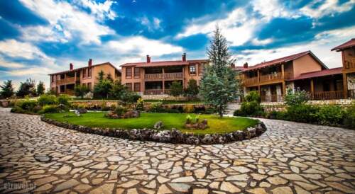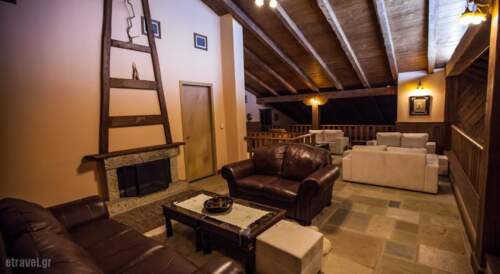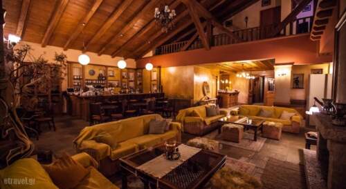 Vitina House Forest Resort lies on a small valley in the heart of Mainalon forest, in the mountainous Arcadia region on the outskirts of the small town of Vitina. Local architecture blends with modern comforts, wood, stone and welcoming colours mix with the grandeur of the mountainous landscape, as it appears through the impressive grand windows and openings of the reception areas. The central reception building includes a restaurant, a small cafe a living room with fireplace and a cozy attic with fireplace and a wonderful view.Vitina House Forest Resort offers a variety of rooms, all of have autonomous heating, satellite TV, kitchenette and a veranda with a view. The Mainalon’ski center, recently renovated, offers a wide variety of winter sports like ski, snowboard and others.