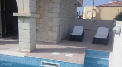 Offering a private pool, the stone-built Villa Constancia is located in Stalos area, just 150 meters from the nearest beach. It features a fully equipped unit with garden views and free WiFi. Chania town is 4.3 miles away. Fitted with a fireplace, this air-conditioned villa of Constancia has 2 separate bedrooms and opens to furnished terrace and a balcony. It consists of a living room with flat-screen, satellite TV and an open-plan kitchen with dining area and oven with cooking hobs. A washing machine and iron facilities are included. Guests can relax on the sun loungers of the decked sun terrace by the pool. BBQ facilities can be enjoyed, along with al fresco dining. A garden with grassy area’s offered. A bus station providing connection to several parts of the area is 100 meters away. Souda port is 10.6 miles away and Ioannis Daskalogiannis International airport is at a distance of 14.9 miles. Free private parking is possible at a nearby location.