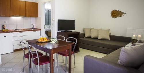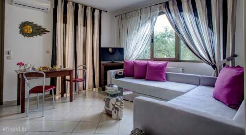 MaryAn is a small boutique hotel in Thassos isalnd features 10 luxury apartments and a studio. The beautiful garden with the olive trees offers an excellent view of the beautiful sunsets. Maryan hotel is the ultimate choice when looking for a luxurious stay in Thassost combines easy access to beaches and the country’s port, elegant and distinctive luxury accommodation which inspires your senses to enjoy pleasant vacations. The pool area offers a refined and refreshing atmosphere. An idyllic open space, created with imagination and luxurious spirIt is the ideal spot for relaxing at any time of the day. Around the pool are comfortable chairs and beautiful furniture surrounded by our garden and the blue Greek sky. Our idyllic garden is full of olive trees which offer a great shade. The trees along with flowers and plants make our garden a real natural oasis. Our hotel is 800 meters away from the center of Limenas and 500 meters from the Port. There is a well organized sandy beach at just 100 meters distance from us and various restaurants at 400 meters. The hotel offers free parking space right in the front. Free wi-fi is available throughout all hotel areas.